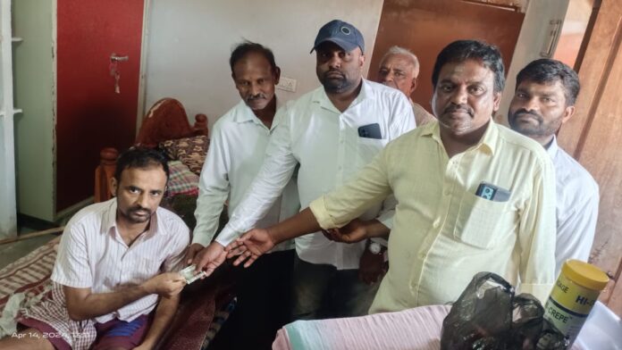 కోదాడ,ఏప్రిల్ 14(mbmtelugunews)ప్రతినిధి మాతంగి సురేష్: డాక్టర్ బి.ఆర్ అంబేద్కర్ 133వ జయంతిని పురస్కరించుకొని కోదాడ మండల పరిధిలోని దొరకుంట గ్రామంలో పాశం వీరస్వామి కుమారుడు పాశం నాగేశ్వరరావు గతం మూడు నెలలుగా కాలు నొప్పితో బాధపడుతూ మంచానికే పరిమితమైన సంగతి తెలిసి చౌడం శ్రీరామ్ చారిటబుల్ ట్రస్టు వ్యవస్థాపక అధ్యక్షులు చౌడం హనుమంతరావు వారి నివాసానికి వెళ్లి 5000 రూపాయలు ఆర్థిక సహాయం అందించాడు.ఈ సందర్భంగా ఆయన మాట్లాడుతూ పాశం నాగేశ్వరరావు కుటుంబం చాలా పేద కుటుంబం వారికి ఈ అంబేద్కర్ జయంతి రోజు సహాయం చేయడం నాకు ఎంతో సంతోషంగా ఉందని అన్నారు.మా చారిటబుల్ ట్రస్టు ఆధ్వర్యంలో ద్వారకుంట గ్రామంలో ఎన్నో సేవా కార్యక్రమాలు నిర్వహించామని ఈ సందర్భంగా గుర్తు చేశాడు.రాబోయే రోజులలో కోదాడ ప్రాంతంలో ఈ ట్రస్టు ద్వారా అనేక సేవా కార్యక్రమాలు నిర్వహిస్తామని ఆయన తెలిపారు. ఈ కార్యక్రమంలో చౌడం శ్రీరామ్ చారిటబుల్ ట్రస్ట్ వ్యవస్థాపక అధ్యక్షులు చౌడం హనుమంతరరావు,మాజీ సర్పంచ్ గద్దల వెంకటేశ్వర్లు,భీమల బ్రహ్మం,పాలడుగు సైదులు,అమ్మ ప్రేమ అమృతం స్వచ్ఛంద సేవా సంస్థ చైర్మన్ గోనెల వెంకటేశ్వర్లు,బూరెల కరుణాకర్ తదితరులు పాల్గొన్నారు.