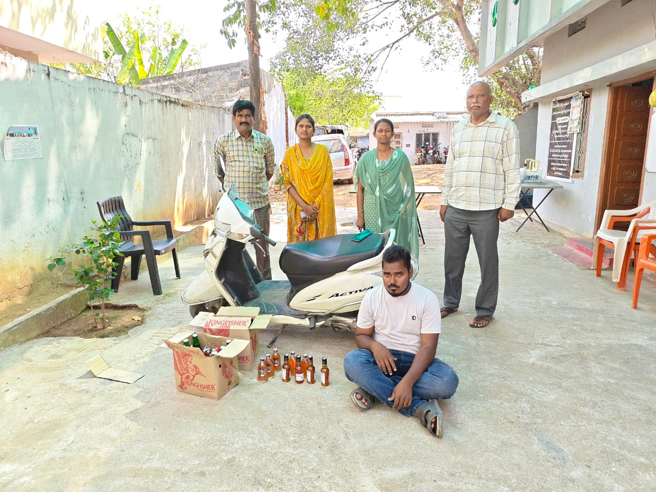 రామాపురం శివారులో ఎస్సై లావణ్య తన సిబ్బందితో కలిసి వాహన తనిఖీలు చేపట్టగా, నిందితుడు హోండా యాక్టివా వాహనంపై మద్యం బాటిళ్లతో పట్టుబడ్డాడు. అతని వద్ద నుండి 18 బీర్ బాటిళ్లు, 47 క్వాటర్ లిక్కర్ బాటిళ్లతో (180 ఎంఎల్) పాటు ద్విచక్ర వాహనాన్ని స్వాధీనం చేసుకున్నట్లు ఎస్సై తెలిపారు. నిందితుడిపై కేసు నమోదు చేసి దర్యాప్తు చేస్తున్నట్లు ఆమె పేర్కొన్నారు. ఈ తనిఖీల్లో హెడ్ కానిస్టేబుల్ సాగర్, రుక్మారెడ్డి, నరేష్ తదితరులు పాల్గొన్నారు.