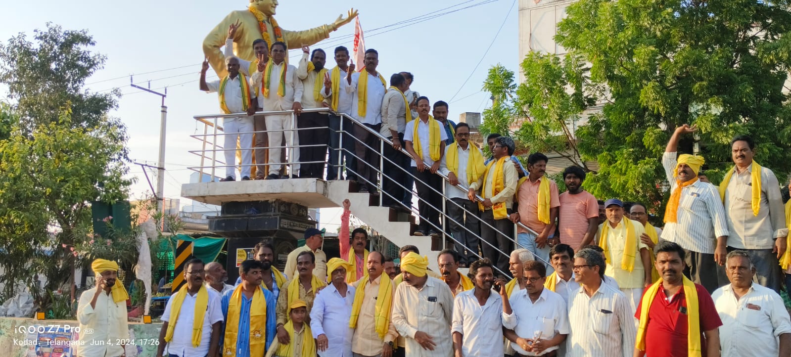 ఈ సందర్భంగా తెలంగాణ రాష్ట్ర ఆర్గనైజింగ్ సెక్రటరీ మత్తినేని సైదేశ్వర రావు మాట్లాడుతూ ఎన్టీఆర్ యూనివర్సిటీ పేరు మార్చి అన్న క్యాంటీన్ మూసివేసి ప్రజా నేత చంద్రబాబును జైల్లో పెట్టి రాజధాని లేని రాష్ట్రం గా మార్చిన సైకో జగన్ వైయస్సార్ పార్టీని ఓడించినందుకు ఆంధ్రప్రదేశ్ ప్రజలకు కృతజ్ఞత అభినందనలు తెలియజేశారు.ఈ కార్యక్రమంలో తెలుగుదేశం సీనియర్ నాయకులు గుండ్లపల్లి సురేష్,తెలుగుదేశం రాష్ట్ర సెక్రటరీ భయ్యా నారాయణ,కోడె వాసు,కోదాడ తెలుగుదేశం పార్టీ నాయకులు ఉప్పగండ్ల శ్రీనివాసరావు,చాపల శ్రీను,కొండ సోమయ్య,కొల్లు సత్యనారాయణ,రేవంత్ రెడ్డి,ముత్తవరపు కోటేశ్వరరావు,హరి,రామ్మోహన్,హబీబ్,కొత్త రాంబాబు,ముండ్ర రామారావు,ముండ్ర రవి,బాబా,రామయ్య,సహదేవ్,రాంబాబు,రోశయ్య,సుబ్బారావు,వెంకటేశ్వరరావు తదితరులు పాల్గొన్నారు.