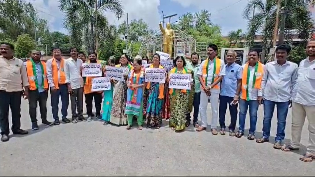 Mbmtelugunews//సిరిసిల్ల జిల్లా,సెప్టెంబర్ 05:ఆదివాసి మహిళపై అత్యాచారం చేసి దాడి చేసిన నిందితున్ని రాష్ట్ర ప్రభుత్వం కఠినంగా శిక్షించాలని బిజెపి మహిళా మోర్చా జిల్లా అధ్యక్షురాలు బర్కం వెంకటలక్ష్మి నవీన్ యాదవ్ డిమాండ్ చేశారు. సిరిసిల్లలోని అంబేద్కర్ చౌక్ వద్ద బిజెపి మహిళా మోర్చా నాయకురాళ్ళు నిరసన వ్యక్తం చేశారు.ఈ సందర్భంగా ఆమె మాట్లాడుతూ హైదరాబాదులో 31వ తేదీన ఆదివాసి మహిళపై ఓ వర్గానికి చెందిన ఆటో డ్రైవర్ అత్యాచారం చేసి దాడి చేశారని తెలిపారు.ఈ సంఘటనపై రాష్ట్ర ప్రభుత్వం ఎలాంటి చర్యలు చేపట్టకపోవడం దారుణమని అన్నారు.ఓవైసీ బ్రదర్స్ ఈ అత్యాచారాన్ని చిన్న ప్రమాదంగా చిత్రీకరించడం దారుణమని,వెంటనే సీఎం రేవంత్ రెడ్డి నిందితుడికి కట్టిన శిక్ష పడేలా చేయాలని డిమాండ్ చేశారు.ఈ కార్యక్రమంలో బిజెపి పట్టణ మహిళా మోర్చా అధ్యక్షురాలు పండుగ మాధవి,భవిత,చొప్పదండి శ్రీనివాస్,గాజుల సదానందం,మ్యాన రాంప్రసాద్,కోడం శ్రీనివాస్,గాజుల వేణు,ఆడెపు రవీందర్,శ్రీకాంత్ రెడ్డి,సురేష్,గుడ్ల సురేష్ తదితరులు పాల్గొన్నారు.