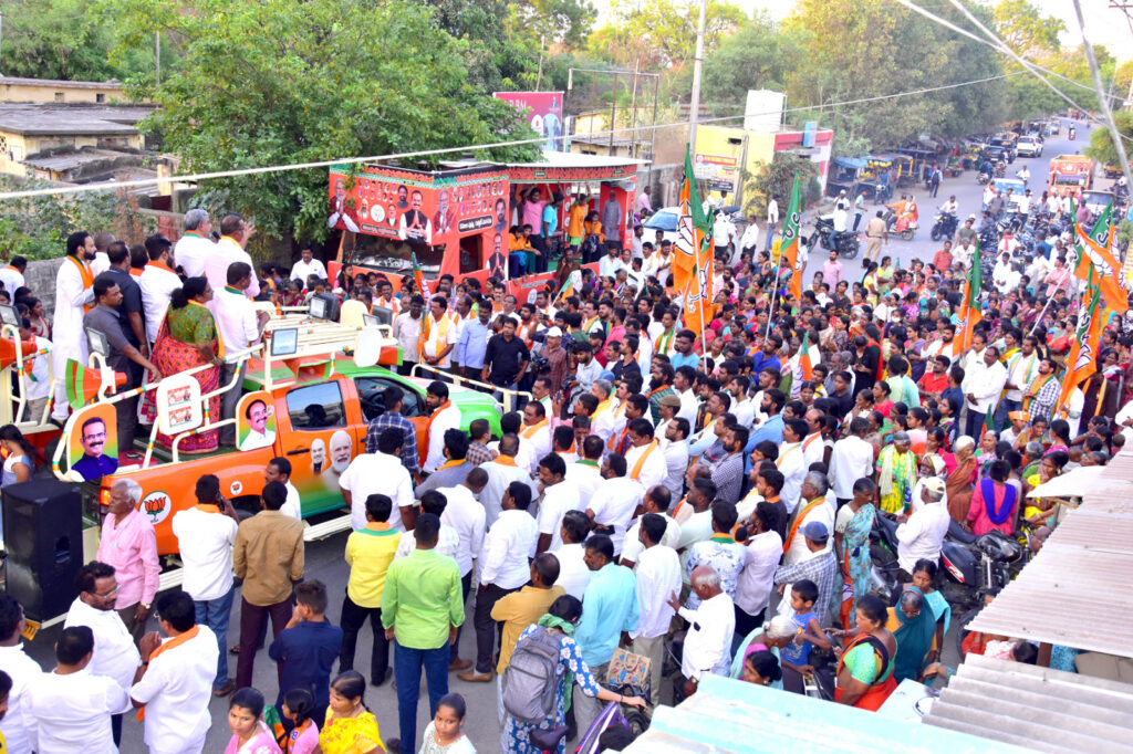బీబీనగర్,మే03(mbmtelugunews)ప్రతినిధి మాతంగి సురేష్:భువనగిరి పార్లమెంటు బీజేపీ అభ్యర్థిగా గెలిపిస్తే అభివృద్ధి చేసి చూపిస్తానని బూర నర్సయ్య గౌడ్ అన్నారు. ఎన్నికల ప్రచారంలో భాగంగా బూర నర్సయ్య శుక్రవారం పార్టీ రాష్ట్ర కార్యవర్గ సభ్యుడు గూడూరు నారాయణ రెడ్డితో కలిసి బీబీనగర్ మండల కేంద్రంలో భారీ ర్యాలీ నిర్వహించి, పోచంపల్లి చౌరస్తా వద్ద కార్నర్ సమావేశాన్ని నిర్వహించారు. ఈ సందర్భంగా నర్సయ్య గౌడ్ మాట్లాడుతూ.. గతంలో ఎంపీగా ఉన్న హయాంలో పార్లమెంటు అభివృద్ధికి ఎనలేని కృషి చేశానని, దాని ఫలితంగానే నేడు బీబీనగర్ లో ఎయిమ్స్, పార్లమెంటు పరిధిలో కేంద్రీయ, గురుకులాల విద్యాలయాలు ఏర్పాటు అయ్యాయని గుర్తు చేశారు. తనను గెలిపించి మరోసారి అవకాశం ఇస్తే భువనగిరిని ఐటి హబ్ గా మార్చి యువతకు ఉపాధి అవకాశాలు కల్పించేందుకు కృషి చేస్తానని హామీ ఇచ్చారు. అదేవిధంగా ఎయిమ్స్ లో స్థానికులకు ఉద్యోగ అవకాశాలు కల్పించే విధంగా చర్యలు తీసుకుంటామని తెలిపారు. ప్రతిపక్ష పార్టీల మాయమాటలు నమ్మితే భువనగిరి అభివృద్ధి మరో పదేళ్లు వెనక్కు వెలుతుందని అన్నారు. కోమటిరెడ్డి వెంకటరెడ్డి ఎంపీగా ఉన్న హయాంలో తాను చేసిన అభివృద్ధి శూన్యమని ఎద్దేవా చేశారు. కాంగ్రెస్ పార్టీ ఓడిపోతుందనే భయంతో సోషల్ మీడియాలో అసత్యపు ఆరోపణలు చేస్తున్నారని విమర్శించారు. ప్రజలు అభివృద్ధికి పట్టం కట్టి బీజేపీని గెలిపించాలని కోరారు.