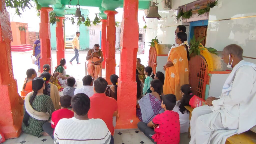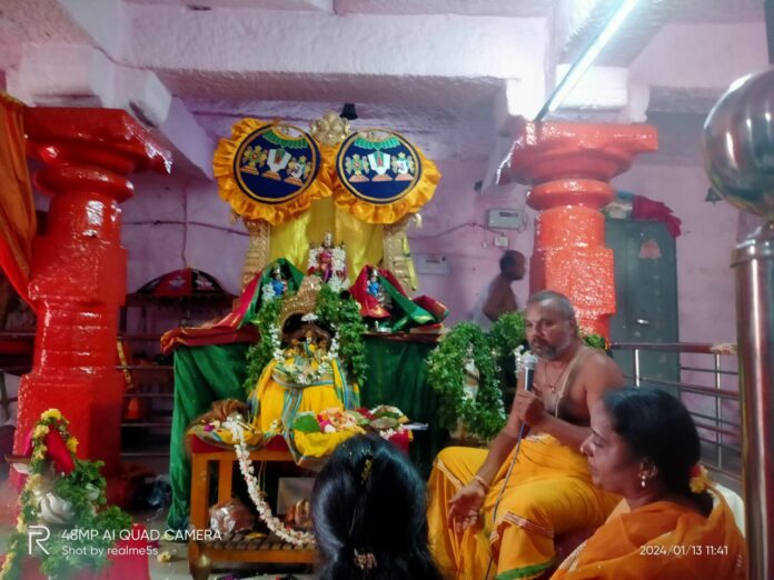 కోదాడ,జనవరి 13(mbmtelugunews)ప్రతినిధి మాతంగి సురేష్:తమ్మర బండపాలెం గ్రామంలో స్వయంవ్యక్తముగా వేంచేసియున్న శ్రీ దేవల్ బాలాజీ వేంకటేశ్వర స్వామి వారి దేవాలయంలో శ్రీ తిరుమల తిరుపతి దేవస్థానములు వారి “ఆళ్వార్ దివ్య ప్రబంధ ప్రాజెక్టు “వారి ఆధ్వర్యంలో నిర్వహింప బడుచున్న ధనుర్మాసం తిరుప్పావై ప్రవచనాలు దివ్యంగా సాగుచున్న నేపథ్యంలో శనివారం నాడు 9 గంటలకు 28వ పాశురమైన “కఱవైగళ్”పాశురార్థవివరణ,తాత్పర్యము,ప్రాశస్త్యము గూర్చిచాలా వైభవముగా ప్రవచనము నిర్వహింపబడినది.
