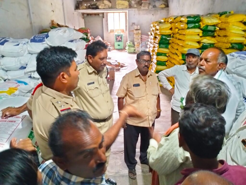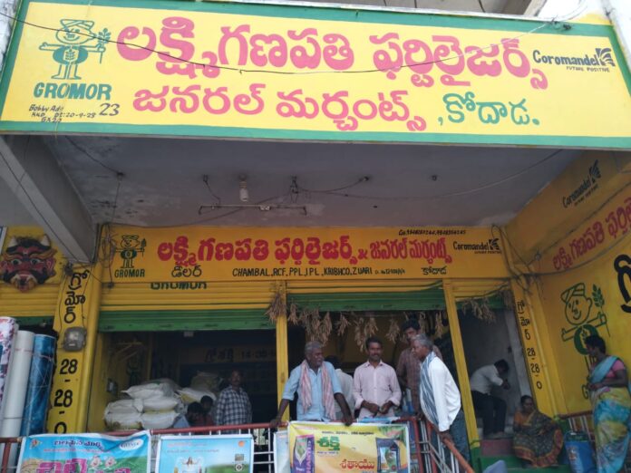 కోదాడ,నవంబర్ 11(mbmtelugunews) ప్రతినిధి మాతంగి సురేష్:కోదాడ పట్టణంలోని ఫెర్టిలైజర్స్ షాపుల యాజమాన్యం కల్తీ విత్తనాలు కల్తీ మందులతో రైతుల్ని మోసం చేస్తున్నారని రైతులు పట్టణ రహదారిపై ఆందోళనకు దిగారు. శనివారం కోదాడ పట్టణంలోని లక్ష్మీ గణపతి ఫెర్టిలైజర్స్ అండ్ జనరల్ మర్చంట్ షాపు ముందు కోదాడ మండల పరిధి లోని కూచిపూడి తండా,రామాంజనేయ తండా,కూచిపూడి,చిలుకూరు మండల పరిధిలోని దూదియా తండా గ్రామానికి చెందిన రైతులు పెద్ద ఎత్తున రోడ్డుపై బైఠాయించారు. పట్టణంలో ట్రాఫిక్ స్తంభించడంతో స్థానిక పోలీసులు వచ్చి రైతుల సమస్యను తెలుసుకుని సంబంధిత ఫెర్టిలైజర్స్ యాజమాన్యంతో మాట్లాడదామని రైతులకు హామీ ఇవ్వడంతో వాళ్లు ధర్నాను విరమించుకొని రైతులు యాజమాన్యం వద్దకు వెళ్ళగా యాజమాన్యం మాట్లాడదామని మాయమాటలు చెప్పి కాలయాపన చేస్తున్నారు.