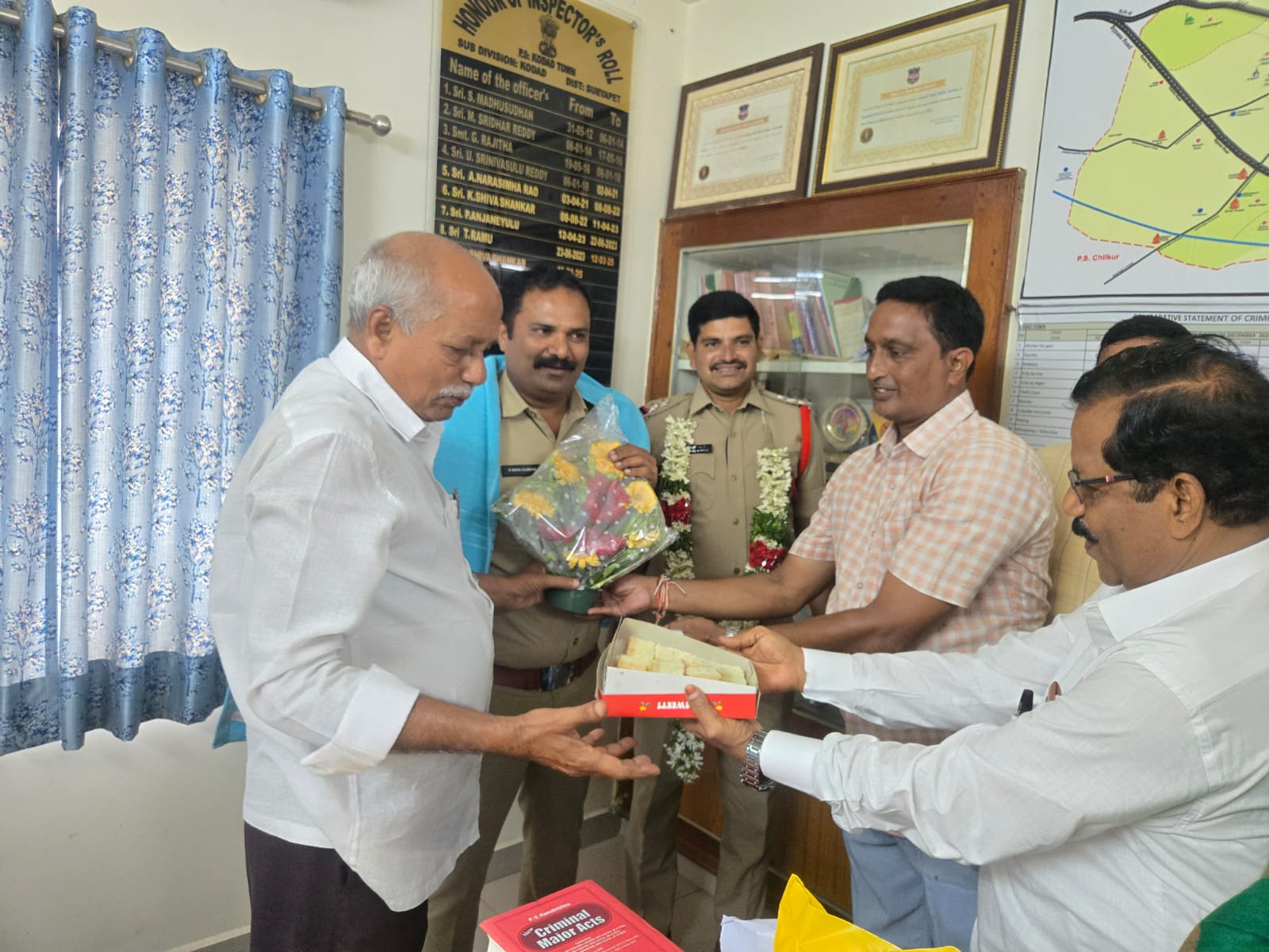 ప్రజలకు ఉత్తమ సేవలందించి భవిష్యత్తులో సిఐ శివశంకర్ మరెన్నో అవార్డులు రివార్డులు పొందాలని ఆకాంక్షించారు. పూలమాలలు శాలువాలతో సత్కరించి తెలిపారు. ఈ కార్యక్రమంలో కాంగ్రెస్ నాయకులు రావెళ్ల కృష్ణారావు, నమ్మాది దేవమని ప్రకాష్ బాబు, కాళిదాసు వెంకటరత్నం, భాస్కర్, ఖాజా,సాలయ్య తదితరులు పాల్గొన్నారు.