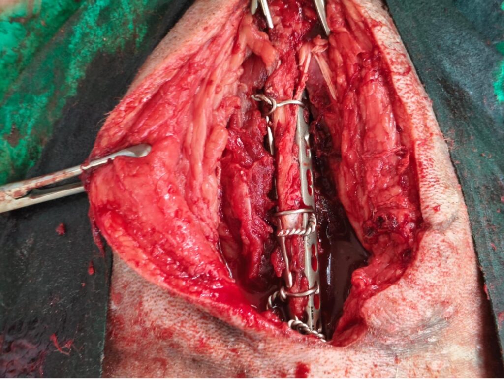 అత్యంత క్లిష్టమైన వెన్నెముక సర్జరీ మాత్రమే కుక్కకి ఉపశమనం ఇస్తుందని అది కూడా ఎంతవరకు విజయవంతం అవుతుందో చెప్పలేమని తెలిపారు. రెండు రాష్ట్రాలలోని పశువైద్య యునివర్సిటీ సర్జరీ విభాగాల లో సలహాలు అడిగినా అందరూ అదే సమాదానం చెప్పారు. హైదరాబాద్ ప్రైవేట్ పశువైద్యశాలకి వెళ్తే లక్షల్లో ఖర్చు అవుతుందన్నారు. ఇవన్నే విచారించిన యజమాని , ప్రేమతో పెంచుకున్న పెంపుడు జంతువు బాధను చూడలేక తన కుక్కకి ఇక్కడే శస్త్ర చికిత్స చేయాలని పట్టుబట్టడంతో అసిస్టెంట్ డైరెక్టర్ డా,పి పెంటయ్య సర్జరీ పనిముట్ల సేకరణ చేసి స్థానిక అర్తోపెడిక్ సర్జన్ ల సహకారంతో కుక్క వెన్నుముక సర్జరీ నిర్వహించారు. విరిగిన వెన్నెముకను కదలకుండా అతికించి విజయవంతంగా శస్త్ర చికిత్స ముగించారు.ఈశస్త్ర చికిత్స లో కట్టకోమ్ముగుడెం పశువైద్యాదికారి డా, బి శ్రీనివాస్, సిబ్బంది రాజు, చంద్రకళ, రాజేష్ లు పాల్గొనారు.
