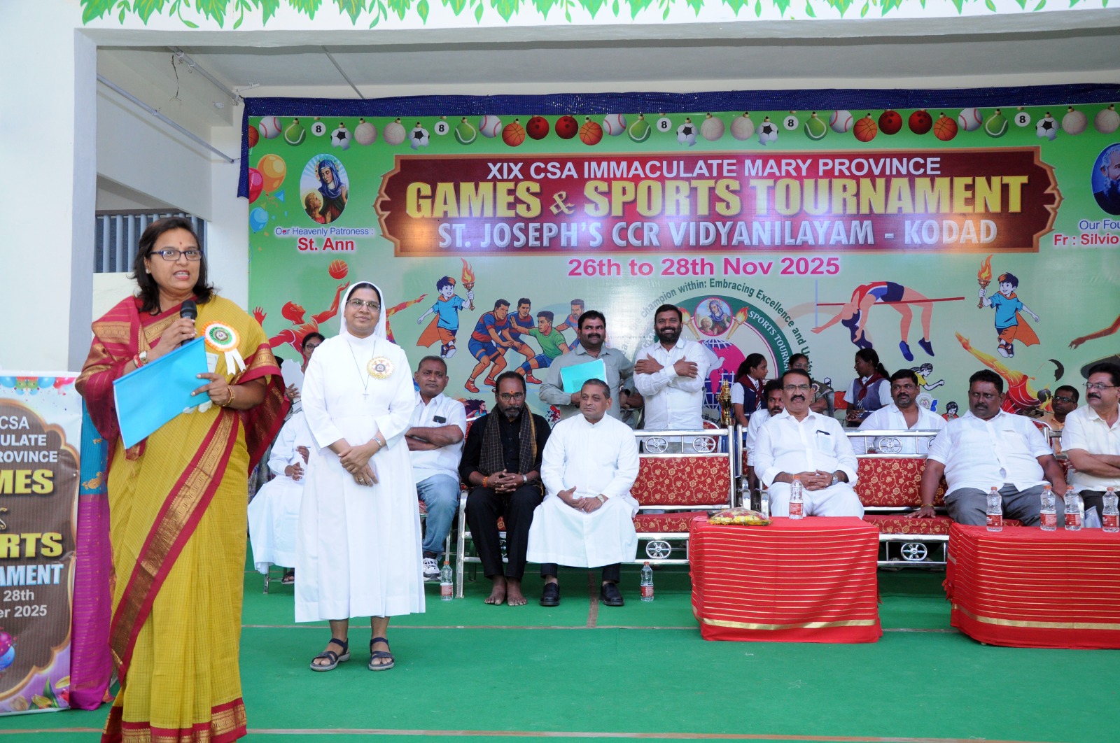 క్రీడల్లో గెలుపు, ఓటములు సహజమని క్రీడా స్ఫూర్తి నీ కలిగి ఉండడమే ప్రదానం అన్నారు. వివిధ రాష్ట్రాల నుండి వందలాది మంది విద్యార్థులు స్పోర్ట్స్ మీట్ లో పాల్గొనడం అభినందనీయం అన్నారు. కాగా తమిళం మాట్లాడి తమిళనాడు రాష్టం క్రీడాకారులను ఉత్తేజ పరిచారు. క్రీడా కారులకు తన వంతు సహకారం అందిస్తన్నారు. విద్యా సంస్థలు విలువల తో కూడిన విద్యను అందించడం తో పాటు క్రీడలకు ప్రాధాన్యత ఇవ్వాలన్నారు. క్రీడలతో విలువలు, క్రమ శిక్షణ అలవడు తాయన్నారు. కాగా పాఠశాల యాజ మాన్యం ఎమ్మెల్యేను ఘనంగా సన్మానించారు. గత నాలుగు రోజులుగా హోరా హోరీ గా జరిగిన జాతీయ స్థాయి క్రీడలకు తమిళనాడు, కర్ణాటక, ఆంధ్ర ప్రదేశ్, తెలంగాణ రాష్ట్ర లనుండి 29పాఠశాల ల నుండి 1450మంది కబడ్డి, వాలీబాల్, హ్యాండ్ బాల్, త్రో బాల్, బాస్కెట్ బాల్, స్పోర్ట్స్ ఈవెంట్స్ లో ప్రాతినిధ్యం వహించారు. ప్రోవిన్షియల్ సుపీరియర్ ఉడుముల శౌరీలు అధ్యక్షతన జరిగిన కార్యక్రమంలో అసిస్టెంట్ సుపీరియర్ జనరల్ సిస్టర్ ఆల్ఫోన్సా, సిస్టర్ నక్షత్రం, సిస్టర్ శాంతా మేరీ, సిస్టర్ ఇరుదయం జూలియట్, సిస్టర్ విజయ ఫాదర్ ఫజోసాఫ్ రెడ్డి పాఠశాల హెచ్ఎం సిస్టర్ అన్ జ్యోతి, పిసిసి డెలిగేట్ చింతకుంట్ల లక్ష్మీనారాయణ రెడ్డి, జిల్లా గ్రంధాలయ చైర్మన్ వంగవీటి రామారావు, ఎంఈఓ సలీం షరీఫ్, బాల్ రెడ్డి, సుందరి వెంకటేశ్వర్లు, దేవరాజ్ తదితరులు పాల్గొన్నారు……