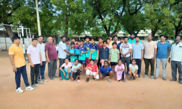 క్రీడాకారులకు వాలీబాలుల బహుకరణ.