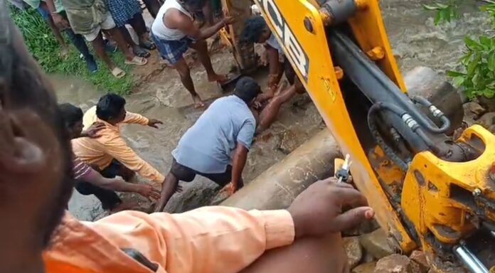 జేసీబీ సహాయంతో తూములను పగలగొట్టి మృతదేహాన్నీ బయటకు తీసిన గ్రామస్తులు
