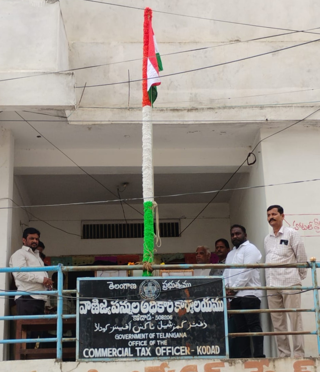 కోదాడ,జూన్ 02(mbmtelugunews)ప్రతినిధి మాతంగి సురేష్:కోదాడ లోని వాణిజ్య పన్నుల అధికారి కార్యాలయంలో ఆదివారం నాడు తెలంగాణ దశాబ్ది వేడుకలను ఘనంగా నిర్వహించారు.ఈ కార్యక్రమానికి ముఖ్య అతిథులుగా కమర్షియల్స్ టాక్స్ అసిస్టెంట్ కమిషనర్,జిఎస్టి సిటిఓ కే నాగేందర్ పాల్గొని ముందుగా తెలంగాణ సిద్ధాంత కర్త ప్రో:జయశంకర్, డాక్టర్ బి.ఆర్ అంబేద్కర్,మహాత్మా గాంధీ చిత్రపటాలకు పూల మాలలు వేసి నివాళులు అర్పించారు.తర్వాత జాతీయ పతాకాన్ని ఆవిష్కరించారు.అనంతరం ఆయన మాట్లాడుతూ ఎంతోమంది త్యాగఫలితమే నేడు తెలంగాణ రాష్ట్రం దినోత్సవం అని ఈ సందర్భంగా అన్నారు.తెలంగాణ రాష్ట్రం ఏర్పడి పది సంవత్సరాలు పూర్తి చేస్తుందని ఈ సందర్భంగా గుర్తు చేశారు.ఈ కార్యక్రమంలో కార్యాలయ సిబ్బంది తదితరులు పాల్గొన్నారు.