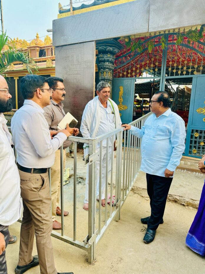 హుజూర్ నగర్,మార్చి 07(mbmtelugunews)ప్రతినిధి మాతంగి సురేష్:మేళ్ళచెరువులో జరిగే మహాశివరాత్రి బ్రహ్మోత్సవాలు ఏర్పాట్లను గురువారం సాయంత్రం కలెక్టర్ పరిశీలించి సంతృప్తి వ్యక్తం చేశారు.గుడి వద్ద ఏర్పాటు చేసిన మెడికల్ క్యాంపులను,వాటర్ ట్యాంకులను ప్రారంభించి ఆలయంలో,బయట భక్తుల కొరకు ఏర్పాటు చేసిన క్యూలైన్లను పరిశీలించారు.టికెట్ల రేట్లు వివరాలను సిబ్బందిని అడిగి తెలుసుకున్నారు.ఇతర ప్రాంతాల నుండి వచ్చే భక్తులకు ఇబ్బందులేకుండా శీఘ్ర దర్శనం కల్పించాలని,అదేవిధంగా ఎద్దుల పందాల కోర్టును,కబడ్డీ కోర్టులను కలెక్టర్ పరిశీలించారు.జాతర ముగిసే వరకు అన్ని శాఖల అధికారులు సమన్వయంతో పనిచేసే జాతరను విజయవంతం చేయాలని కోరారు.ఈ కార్యక్రమంలో కలెక్టర్ వెంట జడ్పీ సీఈవో అప్పారావు,ఆర్డిఓ,ఇరిగేషన్ అధికారులు ప్రేమ్ చంద్,నరసింహారావు,దేవాలయ ఈవో కొండారెడ్డి,తహసిల్దార్ జ్యోతి,అధికారుల సిబ్బంది పాల్గొన్నారు.