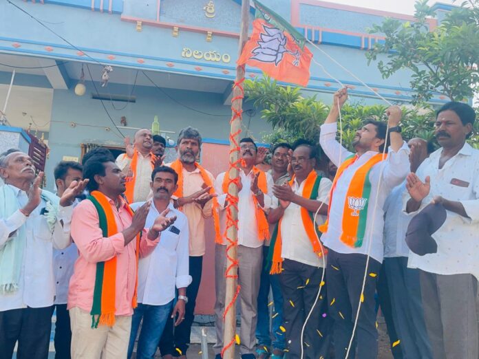 కోదాడ,ఏప్రిల్ 06(mbmtelugunews)ప్రతినిధి మాతంగి సురేష్:కోదాడ నియోజకవర్గంలో భారతీయ జనతా పార్టీ బలోపేతానికి కృషిచేస్తానని బిజెపి రాష్ట్ర నాయకులు డాక్టర్ అంజి యాదవ్ అన్నారు.భారతీయ జనతా పార్టీ ఆవిర్భావ దినోత్సవం సందర్భంగా అనంతగిరి మండలం వాయల సింగారం గ్రామంలో వంగవీటి శ్రీనివాస రావు,పగిడి రామారావు ఆధ్వర్యంలో ఆవిర్భావ దినోత్సవాన్ని పురస్కరించుకొని జండా ఆవిష్కరణ కార్యక్రమాన్ని ఏర్పాటు చేసినారు.ఈ కార్యక్రమానికి ముఖ్య అతిథులుగా భారతీయ జనతా పార్టీ రాష్ట్ర నాయకులు డా,,అంజి యాదవ్ పాల్గొని పతాక ఆవిష్కరణ నూతన కార్యాలయాన్ని ప్రారంభించినారు. అనంతరం పార్టీలో జాయిన్ అవుతున్న 20 మందికి పార్టీ కండవా కప్పి పార్టీలోకి ఆహ్వానించారు.