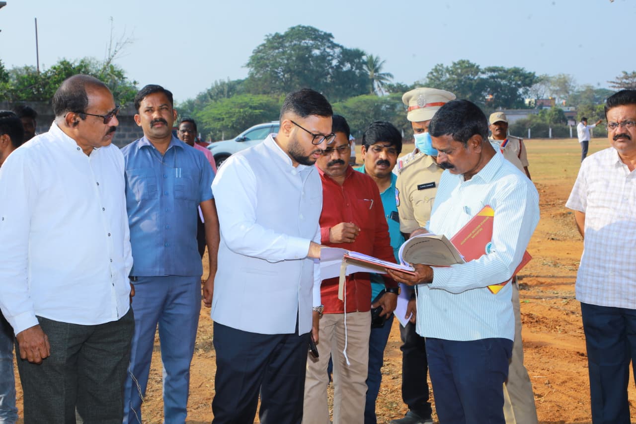 శామియానాలు, ప్రోటోకాల్ ఏర్పాట్లు, గ్రౌండ్ చదును చేయించాలని, దుమ్ము లేవకుండా వాటర్ స్ప్రే చే యించాలని అన్నారు. ఈ కార్యక్రమం లో ఆర్డిఓ సూర్యనారాయణ, ఇంచార్జ్ డిఆర్డిఏపీడీ శిరీష, డీపీఓ యాదగిరి, డిఎస్ఓ మోహన్ బాబు, తహసీల్దార్ వాజీద్ అలీ, ఎంఈఓ సలీం షరీఫ్, ఆర్ & బి అధికారులు, ఎలక్ట్రిసిటీ అధికారులు తదితరులు పాల్గొన్నారు.