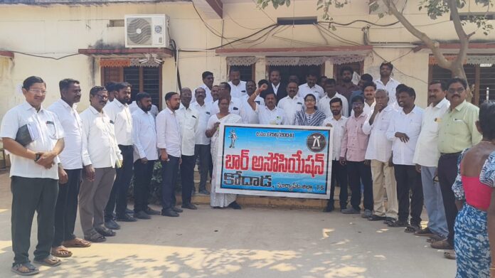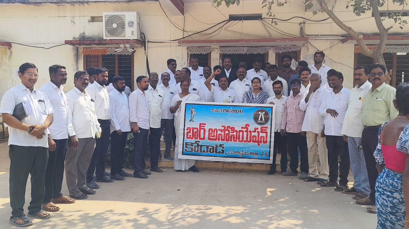 Mbmtelugunews//కోదాడ, ఫిబ్రవరి 19(ప్రతినిధి మాతంగి సురేష్): న్యాయవాదులపై దాడులను ఖండించాలని బార్ అసోసియేషన్ ఉపాధ్యక్షులు ఉయ్యాల నర్సయ్య కోరారు. నల్గొండలో న్యాయవాది నరేష్ కుటుంబం పై దాడి చేసిన దుండగులపై కేసు నమోదు చేసి, వెంటనే ఆరెస్టు చేయాలని డిమాండ్ చేస్తూ కోదాడ బార్ అసోసియేషన్ ఆధ్వర్యంలో గురువారం నాడు కోర్టు విధులు బహిష్కరించి, నిరసన తెలిపారు. ఈ సందర్భంగా బార్ అసోసియేషన్ ఉపాధ్యక్షులు ఉయ్యాల నర్సయ్య మాట్లాడుతూ రాష్ట్ర వ్యాప్తంగా న్యాయవాదులపై దాడులు, దౌర్జన్యాలు పెరిగిపోతున్నాయన్నారు. న్యాయాన్ని రక్షించే క్రమంలో కక్షిదారులు కోసం పనిచేసే న్యాయవాదులకు ఎలాంటి పక్షపాతం ఉండదని, దానికి అసాంఘిక శక్తులు, రౌడీ మూకలు వైరిపక్ష న్యాయవాదులపై దాడులకు పాల్పడం దారుణమైన విషయమన్నారు. ఇలాంటి సంఘటనలను తీవ్రంగా ఖండించాలని, ప్రభుత్వం వెంటనే న్యాయవాదులకు రక్షణ చట్టం ఏర్పాటు చేయాలని ఆయన డిమాండ్ చేశారు. ఈ కార్యక్రమంలో అసోసియేషన్ సభ్యులు యడ్లపల్లి వెంకటేశ్వరరావు, కోడూరు వెంకటేశ్వరరావు, ఎస్ నవీన్, కె మురళి, సీనియర్ న్యాయవాదులు తమ్మినేని హనుమంతరావు, వి రంగారావు, ఈదుల కృష్ణయ్య, గట్ల నర్సింహారావు, యశ్వంత్, రామారావు, బెల్లంకొండ గోవర్ధన్, పాషా, బాలయ్య, కొండ భీమయ్య, హేమలత, శిల్ప, మంద వెంకటేశ్వర్లు, పెద్దఅబ్బాయ్ , నాగరాజు, శరత్ కుమార్, రియాజ్, ప్రసాద్, సంతోష్, అవినాష్, మురళి, ఉపేందర్, చిన్నాబ్బయ్, రవి కిరణ్ తదితరులు పాల్గొన్నారు.