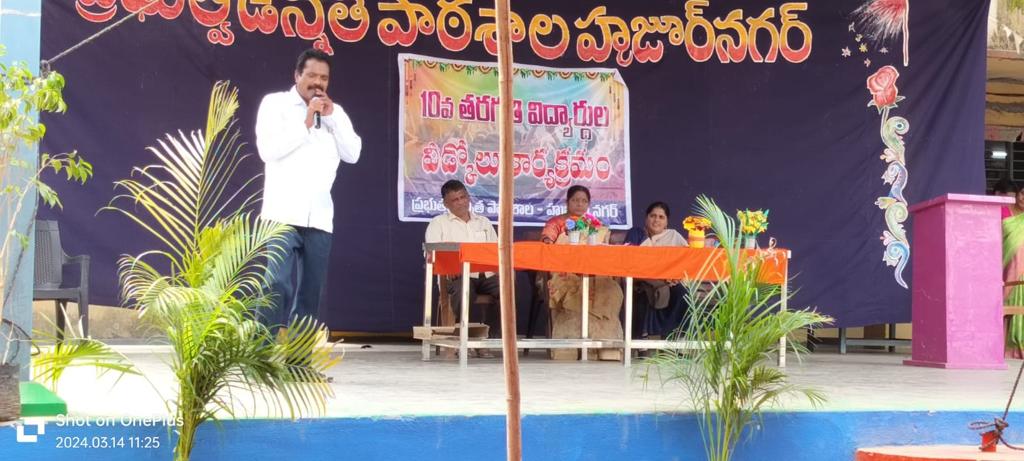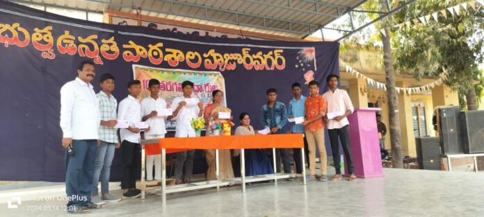 హుజూర్ నగర్,మార్చ్15(ఎంబిఎం తెలుగు న్యూస్)ప్రతినిధి మాతంగి సురేష్:స్థానిక ప్రభుత్వ ఉన్నత పాఠశాలలో 10, వ తరగతి విద్యార్థుల వీడ్కోలు కార్యక్రమము ఘనంగా జరిగినది.ఈ కార్యక్రమానికి ముఖ్యఅతిథిగా సబ్ ట్రెసరరీ ఆఫీసర్ (ఎస్టిఓ) కుమారి సావిత్రి ముఖ్య అతిదిగా విచ్చేసి పదవ తరగతి విద్యార్థుల వీడ్కోలు కార్యక్రమంలో పాల్గొని విద్యార్థులకు హాల్ టికెట్లు పంపిణీ చేశారు.అనంతరం ఆమె విధారులతో మాట్లాడుతూ మీరు కష్టపడి చనివి మంచి జిపిఏ సాధించాలని,చదువుకున్న పాఠశాలకు,మీ తల్లిదండ్రులకు మంచిపేరు తేవాలని అన్నారు. పదవ తరగతిలో మంచి మార్కులు సాధించి భవిష్యత్తులో ఉన్నత శిఖరాలను అధిరోహించాలని కోరినారు.