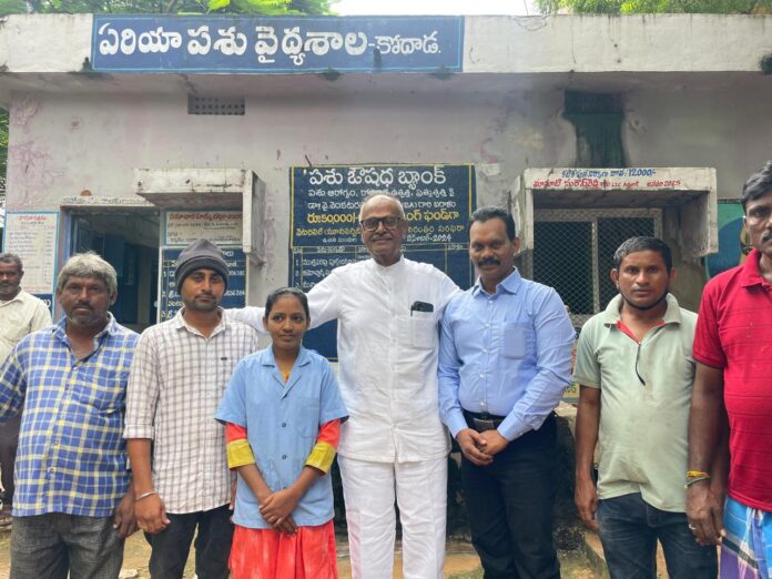 Mbmtelugunews//కోదాడ, సెప్టెంబర్ 24(ప్రతినిధి మాతంగి సురేష్): పట్టణంలోని ప్రాంతీయ పశువైద్యశాలలో అసిస్టెంట్ డైరెక్టర్ గా పనిచేస్తున్న డా పి.పెంటయ్య పశువైద్యంలో చిన్న పెద్ద ప్రాణం అనే తేడా లేకుండా సమస్త జీవాలకు వినూత్నంగా వైద్యం అందిస్తూ జనరల్ మెడిసిన్, సర్జరీ, డెంటల్ ,ఆర్థోపెడిక్, కంటి, గైనక్, న్యూట్రిషన్ మొదలగు అన్ని విభాగాల్లో ప్రత్యేక శ్రద్ధతో సేవలు అందిస్తూ,సమస్యాత్మక కేసులు వచ్చినప్పుడు సంబధిత స్థానిక ఆర్థోపెడిక్ , డెంటల్ స్పెషలిస్ట్ లను సంప్రదిస్తూ అన్ని రకాల పశువైద్యసేవలను కోదాడలో అందించడం అభినందనీయమని ప్రముఖ వైద్యులు డా, జాస్తి సుబ్బారావు అన్నారు. అంకితభావంతో మూగజీవాలకు సేవలందిస్తూ పశుపోషకులకు తలలో నాలుకలా పనిచేస్తున్న డా పి పెంటయ్యను అభినందించడానికే పశువైద్యశాలకు వచ్చానని పశువైద్యుడిని ప్రశంసించారు.