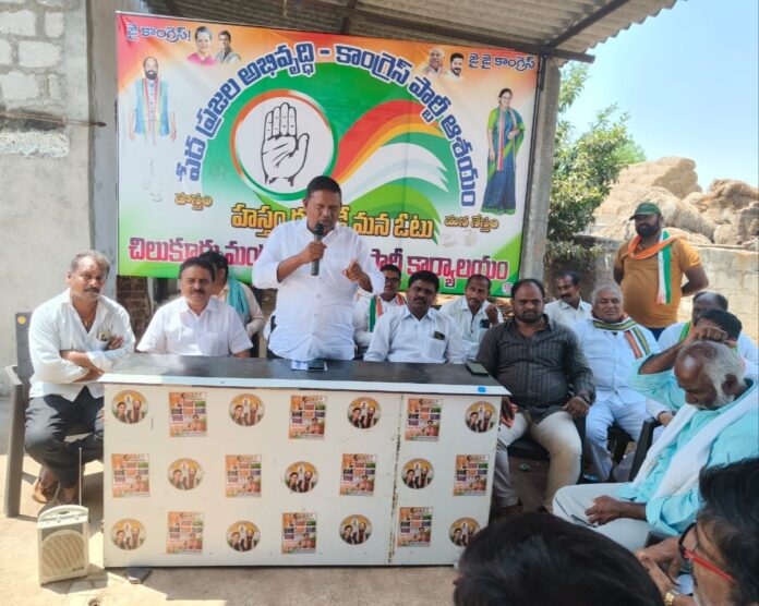 చిలుకూరు,మార్చి 22(mbmtelugunews)ప్రతినిధి మాతంగి సురేష్:త్వరలో జరగనున్న పార్లమెంట్ ఎన్నికలకు కాంగ్రెస్ పార్టీ నాయకులు సిద్ధంగా ఉండాలని ఆ పార్టీ మండల అధ్యక్షుడు కీత వెంకటేశ్వర్లు అన్నారు.శుక్రవారం చిలుకూరులో జరిగిన పార్లమెంట్ ఎన్నికల సన్నహాక సమావేశంలో మాట్లాడారు.మండలం నుండి ఎంపీ ఎన్నికల్లో భారీ మెజారీటీ రావాలని అన్నారు.కాంగ్రెస్ పార్టీ నాయకులు సమన్యంతో పని చేయాలని సూచించారు.