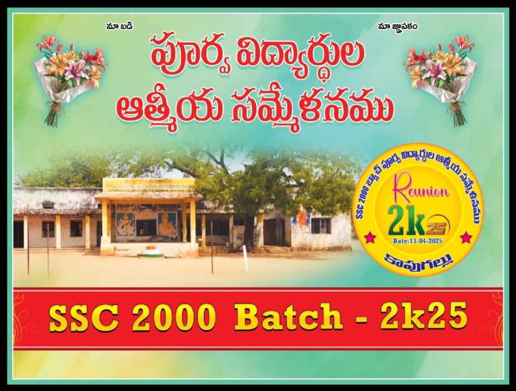 Mbmtelugunews//కోదాడ,ఏప్రిల్ 13 (ప్రతినిధి మాతంగి సురేష్):మండల పరిధిలోని కాపుగల్లు ప్రాథమిక పాఠశాల 25 సంవత్సరాల జ్ఞాపకాలు నెమరు వేసుకున్న పూర్వ విద్యార్థులు కాపుగల్లు జడ్పిహెచ్ఎస్ లో 1999 2000 బ్యాచ్ 25 సంవత్సరాల తర్వాత తమ గత స్మృతులను నెమరు వేసుకునుటకు ఆదివారం గెట్ టుగెదర్ ఏర్పాటు చేసుకున్నారు.ఎక్కడెక్కడో వివిధ రంగాలలో వివిధ హోదాలలో స్థిరపడిన విద్యార్థులంతా ఒక గ్రూపుగా ఏర్పడి తమ చదువుకున్న పాఠశాలలో ఈ కార్యక్రమాన్ని ఏర్పాటు చేసుకొని అప్పటి తమకు బోధించిన ఉపాధ్యాయులను ఆహ్వానించి వారి చేత మరల పాఠాలు బోధించుకున్నట్లు క్లాస్ రూమ్ లో చేసిన విద్యార్థులు మధురస్మృతులను గుర్తుచేసుకొని ఆనందించారు.