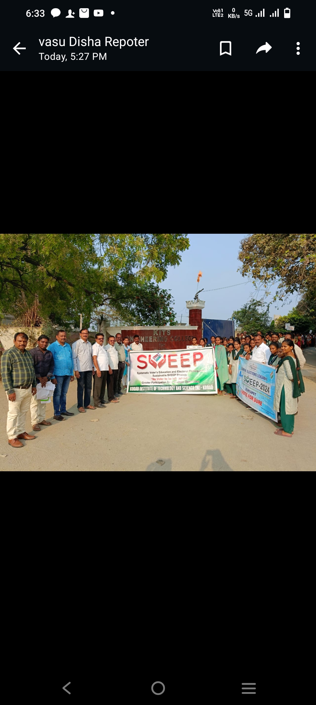 కోదాడ,మార్చి 15(mbmtelugunews)ప్రతినిధి మాతంగి సురేష్:ప్రజాస్వామ్యంలో ఓటు హక్కు వజ్రాయుధమని కోదాడ ఆర్డిఓ సిహెచ్ సూర్యనారాయణ అన్నారు.శుక్రవారం కోదాడ కిట్స్ ఇంజనీరింగ్ కళాశాలలో విద్యార్థులకు ఓటు హక్కు నమోదు పై అవగాహన కల్పించి మాట్లాడారు.18 సంవత్సరాలు దాటిన యువతి యువకులు విధిగా ఓటు హక్కు నమోదు చేసుకోవాలన్నారు.ఓటు హక్కు నమోదు పై విస్తృత ప్రచారం నిర్వహించాలని కోరారు.విద్యావంతులు ప్రజాస్వామ్య విలువలను రాజ్యాంగ ఫలాలను తెలుసుకోవాలన్నారు.కిడ్స్ మహిళా ఇంజనీరింగ్ కళాశాల చైర్మన్ డాక్టర్ నీలా సత్యనారాయణ అధ్యక్షతన జరిగిన.ఈ కార్యక్రమంలో కోదాడ మండల విద్యాధికారి సలీం షరీఫ్,అసెంబ్లీ లెవెల్ మాస్టర్ ట్రైనర్ చంద్రశేఖర్,రమేష్,ప్రిన్సిపాల్ గాంధీ,డిప్యూటీ తాసిల్దార్ అనిల్ కుమార్,అకడమిక్ డైరెక్టర్ పోతుగంటి నాగేశ్వరరావు తదితరులు పాల్గొన్నారు.