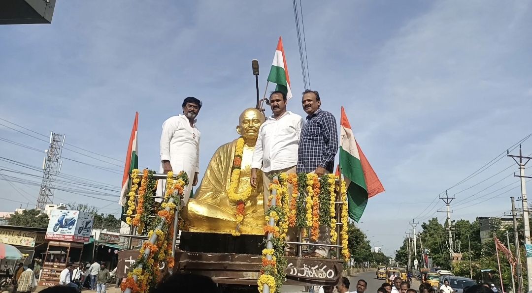 కోదాడ,అక్టోబర్ 02(mbmtelugunews) ప్రతినిధి మాతంగి సురేష్:స్థానిక బస్టాండ్ సెంటర్లో గల మహాత్మా గాంధీ విగ్రహం వద్ద సత్యమేవ జయతే సేవా సమితి వ్యవస్థాపక అధ్యక్షులు నాదెళ్ల బాలకృష్ణ ఆధ్వర్యంలో మహాత్మా గాంధీ 154వ జయంతి వేడుకలు ఘనంగా నిర్వహించారు.ఈ కార్యక్రమానికి ముఖ్య అతిథులుగా స్థానిక శాసనసభ్యులు బొల్లం మల్లయ్య యాదవ్ పాల్గొని గాంధీ విగ్రహం వద్ద కొబ్బరికాయ కొట్టి పూలమాలలు వేసి నివాళులర్పించిన ఎమ్మెల్యే బొల్లం మల్లయ్య యాదవ్.అనంతరం ఆయన మాట్లాడుతూ ఆంగ్లేయుల పాలననుండి భారతదేశానికి స్వాతంత్య్రం సాధించిన నాయకులలో అగ్రగణ్యుడు. ప్రజలు అతన్ని మహాత్ముడని, జాతిపిత అని గౌరవిస్తారు. సత్యము,అహింసలు గాంధీ నమ్మే సిద్ధాంత మూలాలు.సహాయ నిరాకరణ,సత్యాగ్రహము అతని ఆయుధాలు అన్నారు కొల్లాయి కట్టి, చేత కర్రబట్టి,నూలు వడకి,మురికివాడలు శుభ్రం చేసి అన్ని మతాలూ, కులాలూ ఒకటే అని చాటాడని అన్నారు.ఆ కాలంలోనే గాంధీని ప్రజలు ప్రేమతో “బాపు”అనీ,”మహాత్ముడు” అనీ పిలుచుకొనసాగారు. హింసకు ప్రతిహింస అనేది గాంధీ దృష్టిలో దుర్మార్గము అని అన్నారు. అనంతరం సత్యమేవ జయతే సేవా సమితి సభ్యులు మాట్లాడుతూ కొమరబండ నుండి దుర్గాపురం వరకు మహాత్మా గాంధీ రోడ్డు(ఎంజీ రోడ్డు)గా నామకరణం చెయ్యమని ఎమ్మెల్యే బొల్లం మల్లయ్య యాదవ్ ని అడగగా వెంటనే స్పందించిన ఓకే చెప్పిన ఎమ్మెల్యేకు హర్షం వ్యక్తం చేసిన సేవా సమితి సభ్యులు.ఈ కార్యక్రమంలో డాక్టర్ రామారావు,పుట్టా సురేంద్రబాబు,తేజ జానకి రామయ్య,భాస్కర్,భరణి రెడ్డి,రహీం,రవితేజ,వీరభద్రరావు,వీరబాబు,శ్రీనివాసరెడ్డి తదితరులు పాల్గొన్నారు.