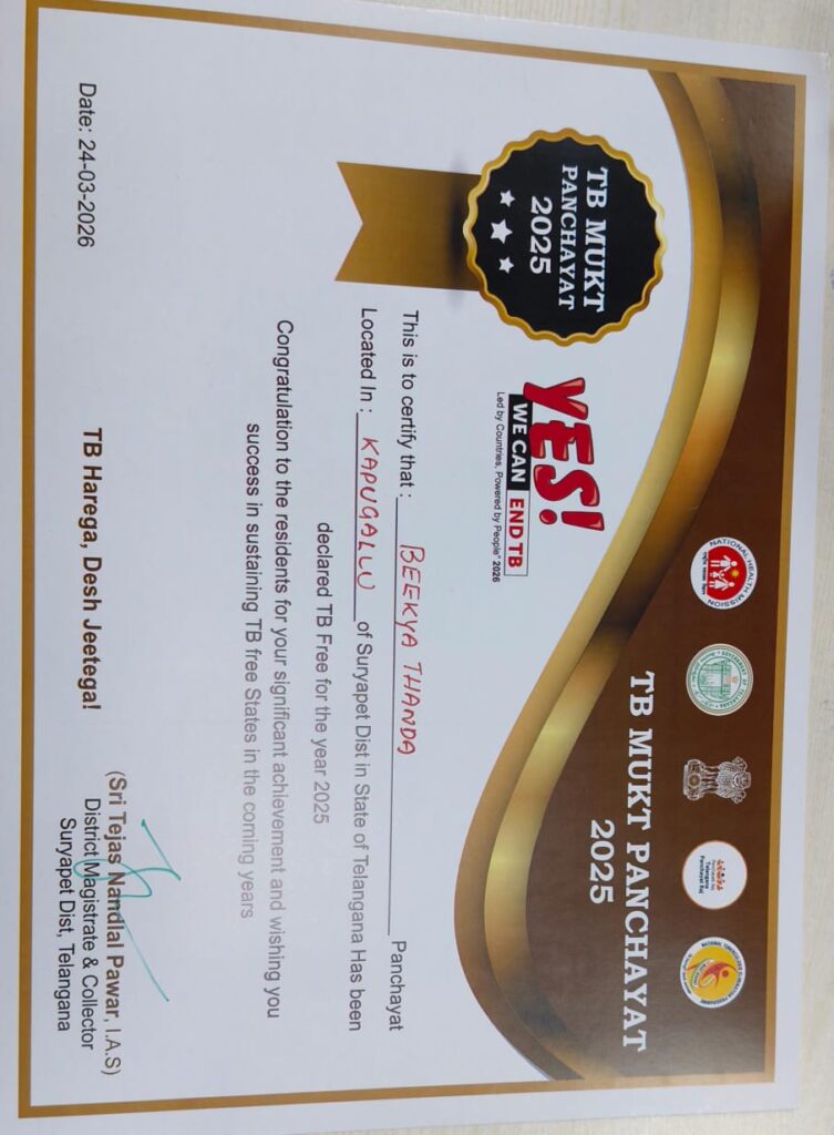 భీక్యా తండా గ్రామ పంచాయతీకి ‘క్షయ రహిత’ పురస్కారం