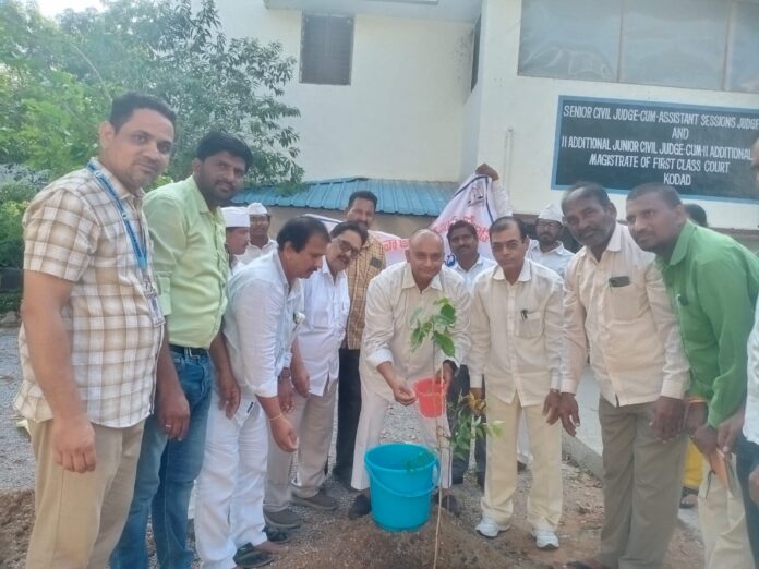 కోదాడ,జూన్ 04(mbmtelugunews)ప్రతినిధి మాతంగి సురేష్:పట్టణంలో కోర్టు ఆవరణంలో ప్రపంచ పర్యావరణ దినోత్సవం సందర్భంగా కోర్టు ఆవరణంలో కోదాడ ప్రిన్సిపల్ జూనియర్ సివిల్ జడ్జ్ ఎన్ శ్యాంసుందర్ సెకండ్ క్లాస్ మెజిస్ట్రేట్ సిహెచ్ సత్యనారాయణ.మొక్కలు నాటడం జరిగింది ఈ సందర్భంగా ప్రిన్సిపల్ జూనియర్ సివిల్ జడ్జ్ ఎన్ శ్యాంసుందర్ మాట్లాడుతూ పర్యావరణాన్ని పరిరక్షించుకోవాల్సిన బాధ్యత మనందరిపై ఉందని ప్రతి ఒక్కరూ విధిగా ఇలాంటి సందర్భాలలో మొక్కలు నాటాలని వాటి పరిరక్షణ చేసి వాతావరణ సమతుల్యతను కాపాడవచ్చు అని సూచించారు.