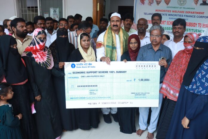 మైనార్టీలకు 100% సబ్సిడీతో లక్ష రూపాయలు ఆర్థిక సహాయం చెక్కుల పంపిణీ లో ఎమ్మెల్యే బొల్లం మల్లయ్య యాదవ్