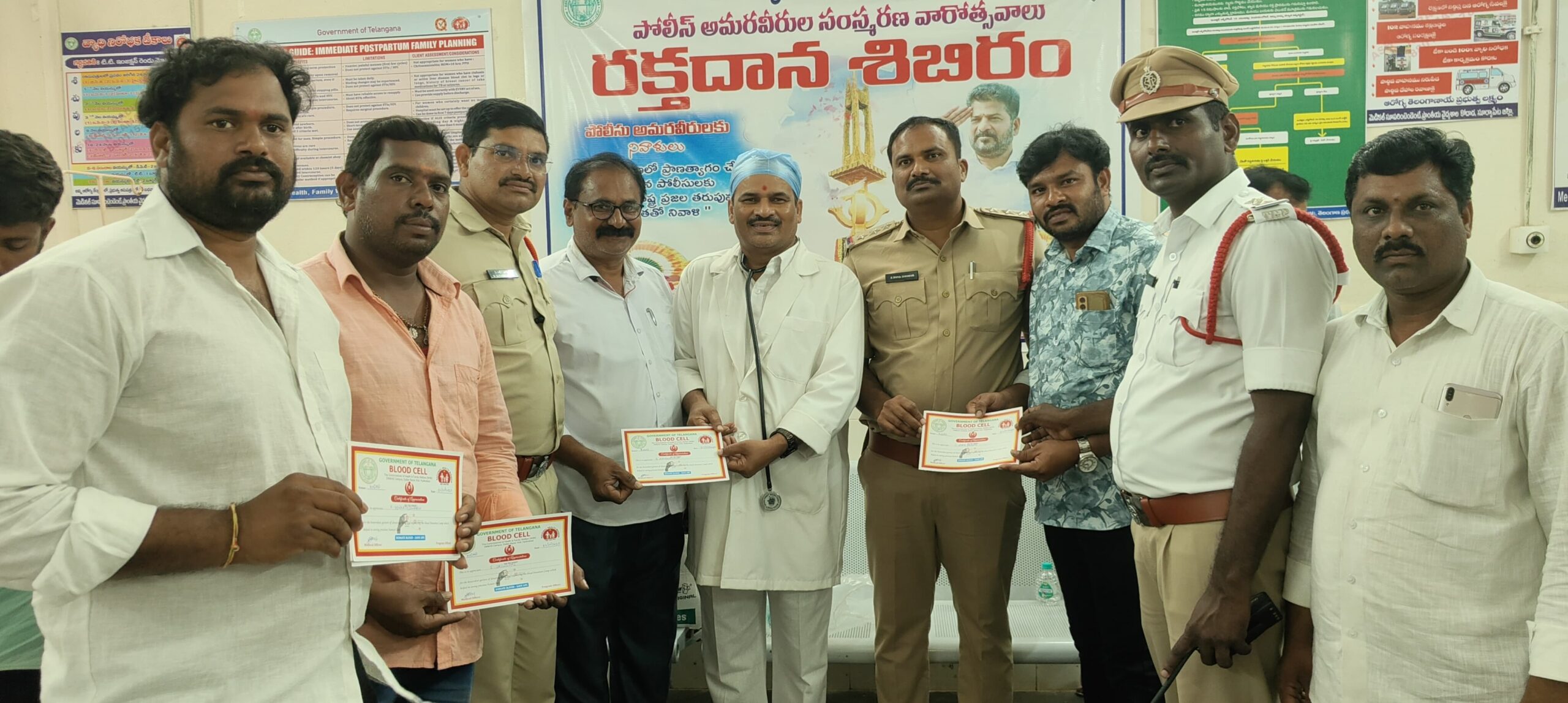 Mbmtelugunews//కోదాడ, అక్టోబర్ 24(ప్రతినిధి మాతంగి సురేష్): పోలీసు అమరవీరుల సంస్మరణ కార్యక్రమాలలో భాగంగా పోలీసు అమరవీరుల త్యాగాల జ్ఞాపకార్థం శుక్రవారం పట్టణంలోని ప్రభుత్వ హస్పటల్ లో జిల్లా ఎస్పీ నరసింహ ఆదేశాలతో కోదాడ డిఎస్పి మామిళ్ళ శ్రీధర్ రెడ్డి అధ్వర్యంలో మెగారక్తదాన శిబిరాన్ని నిర్వహించారు. ఈ రక్తదాన శిబిరాన్ని కోదాడ సిఐ శివశంకర్ ప్రభుత్వ హాస్పిటల్ సూపరింటెండెంట్ దశరథ తో కలిసి ప్రారంభించారు. అనంతరం వారు మాట్లాడుతూ పోలీసు అమరవీరుల త్యాగాల స్మారకంగా ఈ రక్తదాన శిబిరాన్ని ఏర్పాటు చేయటం జరిగిందని తెలిపారు.