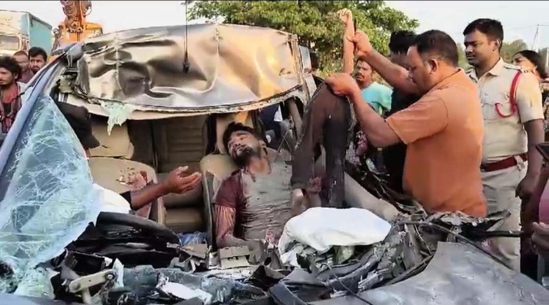 కోదాడ,ఏప్రిల్ 25 (mbmtelugunews)ప్రతినిధి మాతంగి సురేష్: గురువారం తెల్లవారుజామున నాలుగు గంటల సమయంలో ఆగి ఉన్న లారీకి కారు ఢీకొనడంతో ఆరుగురు మృతి చెందిన సంఘటన కోదాడ పట్టణ పరిధిలోని శ్రీరంగాపురం వద్ద జాతీయ రహదారిపై చోటుచేసుకుంది.వివరాలలోకి వెళితే కుటుంబ సభ్యులు తెలిపిన ప్రకారం కోదాడ మండల పరిధిలోని చిమిర్యాల గ్రామానికి చెందిన జిల్లా శ్రీకాంత్ కు బోనకల్లు మండలం గోవిందాపురం గ్రామానికి చెందిన నల్లమల నాగమణి తో ఎనిమిది సంవత్సరాల క్రితం పెళ్లి అయినది. మీరు ఇరువురికి జిల్లా లాస్య 5 సంవత్సరాలు జిల్లా లావణ్య 3 సంవత్సరముల పాపలు కలరు. శ్రీకాంత్ చిన్నతనంలోనే తండ్రిని కోల్పోయాడు రెండు సంవత్సరాల క్రితం తల్లిని కూడా కోల్పోయాడు శ్రీకాంత్ భార్య అయిన నాగమణి కుటుంబం శ్రీకాంత్ తమ్ముడు బతుకుదెరువు కోసం హైదరాబాదు వెళ్లి డ్రైవింగ్ చేసుకుంటూ జీవనం సాగిస్తున్నారు.శ్రీకాంత్ చిన్న పాప అయినా జిల్లా లావణ్య పుట్టి వెంట్రుకల నిమిత్తం విజయవాడలోని గుణదలకు గురువారం తెల్లవారుజామున హైదరాబాదు నుండి టీఎస్ 09 ఎఫ్ ఎఫ్ 7540 ఎర్టిగా కారులో బయలుదేరినారు.ఈ కారులో మొత్తం పదిమంది ప్రయాణిస్తున్నారు.పదిమందిలో నలుగురు చిన్న పిల్లలు ఆరుగురు పెద్దవారు ఉన్నారు.