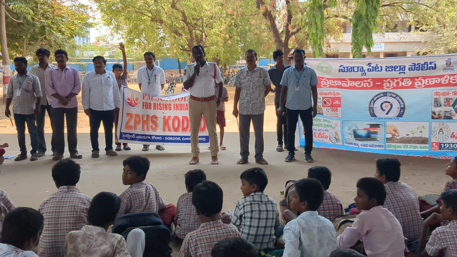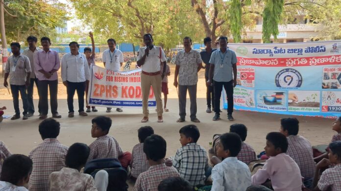 Mbmtelugunews//కోదాడ, ఏప్రిల్ 16(ప్రతినిధి మాతంగి సురేష్): గురువారం నాడు కోదాడ పట్టణంలో పీఎం శ్రీ జిల్లా పరిషత్ బాలుర ఉన్నత పాఠశాల విద్యార్థులకు ఏర్పాటు చేసిన రోడ్డు భద్రత అవగాహన కార్యక్రమంలో కోదాడ పట్టణం ట్రాఫిక్ ఎస్ఐ అంజిరెడ్డి పాల్గొని మాట్లాడినారు. తెలంగాణ రాష్ట్రం” ప్రజా పాలన ప్రణాళికా ప్రగతి “కార్యక్రమంలో భాగంగా రోడ్డు భద్రత పాటించవలసిన నియమ నిబంధనలను తెలియజేసినారు. విద్యార్థులు లైసెన్స్ లేకుండా వాహనాలు నడిపితే, వారి తల్లిదండ్రులకు జైలు శిక్ష పడుతుందని, త్రిబుల్ రైడింగ్ చేయవద్దు, వాహనంపై నడిపే వారితో పాటు కూర్చున్న వారు కూడా హెల్మెట్ ని ధరించాలని, అతివేగంగా వాహనాలు నడపొద్దు ప్రాణాలను కోల్పోవద్దు అని విద్యార్థులకు తెలియజేప్పినారు. సెల్ ఫోనులో వాట్సప్ ఫేస్బుక్ ఇంస్టాగ్రామ్ లలో పరిచయం లేని వారి రీల్స్ చూడవద్దు, లింకులు తెరవొద్దు, విద్యా విషయ పరిజ్ఞానం కోసమే సెల్ ఫోన్ ఉపయోగించాలని, సైబర్ క్రైమ్ దూరంగా ఉండాలని, విద్యార్థులు చదువుపై దృష్టి పెట్టి, తల్లిదండ్రులకు సంతోషాన్ని కీర్తి ప్రతిష్టలు తేవాలని, ఉజ్వల భవిష్యత్తు కోసం కష్టపడాలని తెలిపినారు. ఈ కార్యక్రమంలో పాఠశాల ఇన్చార్జి ప్రధానోపాధ్యాయులు డి మార్కండేయ, ట్రాఫిక్ సిబ్బంది, ఉపాధ్యాయులు, విద్యార్థులు పాల్గొన్నారు.