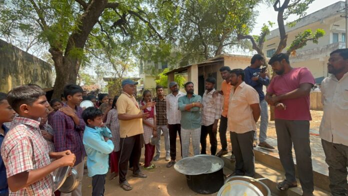 పది సంవత్సరాలు అధికారంలో ఉన్న టిఆర్ఎస్ ప్రభుత్వం పాఠశాల విద్యార్థుల ఉదయం టిఫిన్, మధ్యాహ్నం భోజనం, సాయంత్రం స్నాక్స్ ని అందించిన ఘనత కేసిఆర్ కి దక్కిందన్నారు.ప్రభుత్వం నుండి నిధులు వస్తున్నా స్థానిక ప్రధానోపాధ్యాయుడు తన వ్యక్తిగతమైన పనులు తప్ప పాటశాలకు కాని,విద్యార్ధుల అభివృద్ధికి కాని ఎటువంటి ప్రాణాలికలు కాని లేవు అన్నారు.ఇప్పటికైనా విద్యాశాఖ అధికారులు స్పందించి ప్రధానోపాధ్యాయుడిపై శాఖ పరమైన చర్యలు తీసుకోవాలని కోరారు.ఈ కార్యక్రమంలో బత్తుల కృష్ణ, అరుణ్, జలందర్, నాగుల్, రమేష్, అఖిల్, గోపి, మునీర్, గోపి, వెంకన్న తదితరులు పాల్గొన్నారు.