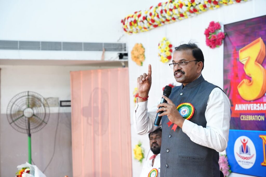 Mbmtelugunews//కోదాడ, డిసెంబర్ 30(ప్రతినిధి మాతంగి సురేష్): ప్రస్తుత సమాజంలో విద్యార్థులకు ఇంటర్మీడియట్ కోర్సు కీలకమని, ఆ సమయంలో విద్యార్థులు పట్టుదలతో చదివి ర్యాంకులు సాధించి వారి తల్లిదండ్రులకు మంచి పేరు తేవాలని సీబీఐ మాజీ జాయింట్ డైరెక్టర్ వివి లక్ష్మీనారాయణ అన్నారు. మంగళవారం కోదాడ పట్టణంలోని ఆర్ఎస్వీ ఫంక్షన్ హాల్ లో జరిగిన ఎన్ఆర్ఎస్ ఐఐటీ & మెడికల్ అకాడమీ 3వ వార్షికోత్సవ వేడుకలలో ఆయన ముఖ్య అతిథిగా పాల్గొన్నారు. ఈ సందర్భంగా ఆయన మాట్లాడుతూ సూర్యాపేట జిల్లా కోదాడ వంటి పట్టణ ప్రాంతాలలో చదివే విద్యార్థులకు కార్పొరేట్ స్థాయిలో విద్య అందించి,