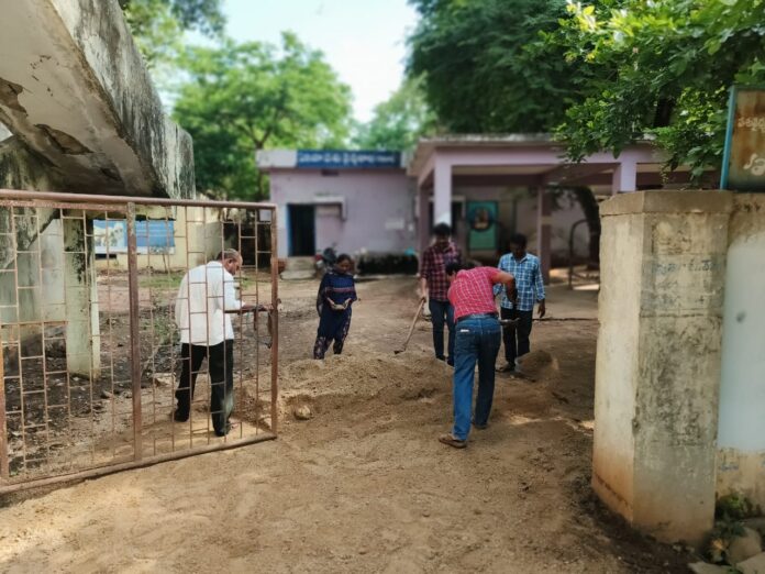 స్వచ్ఛదనం -పచ్చదనం కోసం బురద తొలగించి మొరంతో వైద్యశాల ప్రాంగణం లెవలింగ్ చేసి నీరు నిలబడకుండా చేసిన అసిస్టెంట్ డైరెక్టర్ డా,,పి పెంటయ్య