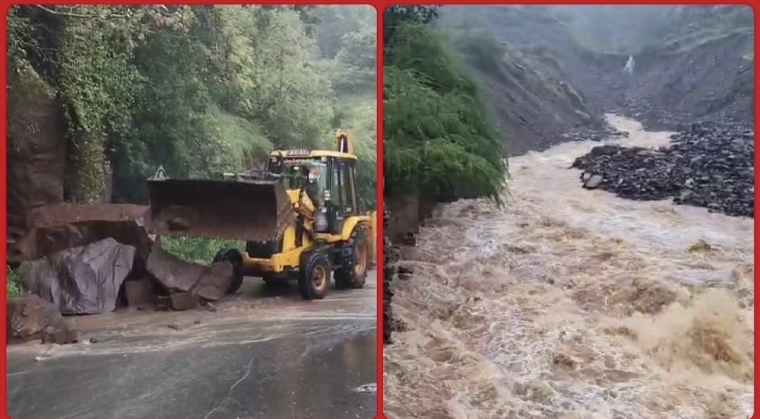వర్షం దాటికి విరిగిపడిన కొండ చర్యలు.. మూడు షాపులు ధ్వంసం