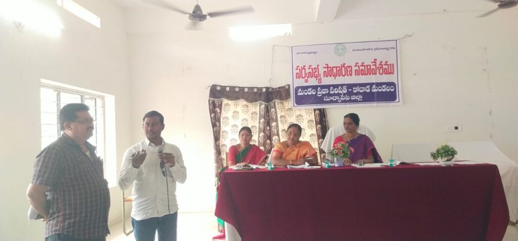 కోదాడ,జనవరి 09(mbmtelugunews)ప్రతినిధి మాతంగి సురేష్:సమస్యల పరిష్కార దిశగా అన్ని శాఖల అధికారులు ప్రజాప్రతినిధులతో సర్వసభ్య సమావేశము నిర్వహించడం జరిగిందని నూతన ఎంపీపీ మల్లెల రాణి బ్రహ్మయ్య తెలిపారు. స్థానిక ఎంపీడీవో కార్యాలయంలో ఎంపీపీ మల్లెల రాణి బ్రహ్మయ్య అధ్యక్షతన నిర్వహించినమండల సర్వసభ్య సాధారణ సమావేశంలో జడ్పిటిసి మందలపు కృష్ణకుమారి శేషు,ఎంపీడీవో విజయ శ్రీ లు పాల్గొన్నారు.ఈ సందర్భంగా పలు శాఖల సంబంధిత అధికారులు మాట్లాడుతూ ప్రభుత్వం నిర్వహిస్తున్న ప్రభుత్వ పథకాలు ఎంతమందికి అందాయి వాటి వలన ఎంతమంది లబ్ది పొందుతున్నారు వాటిపై వివరణ ఇవ్వడం జరిగింది.