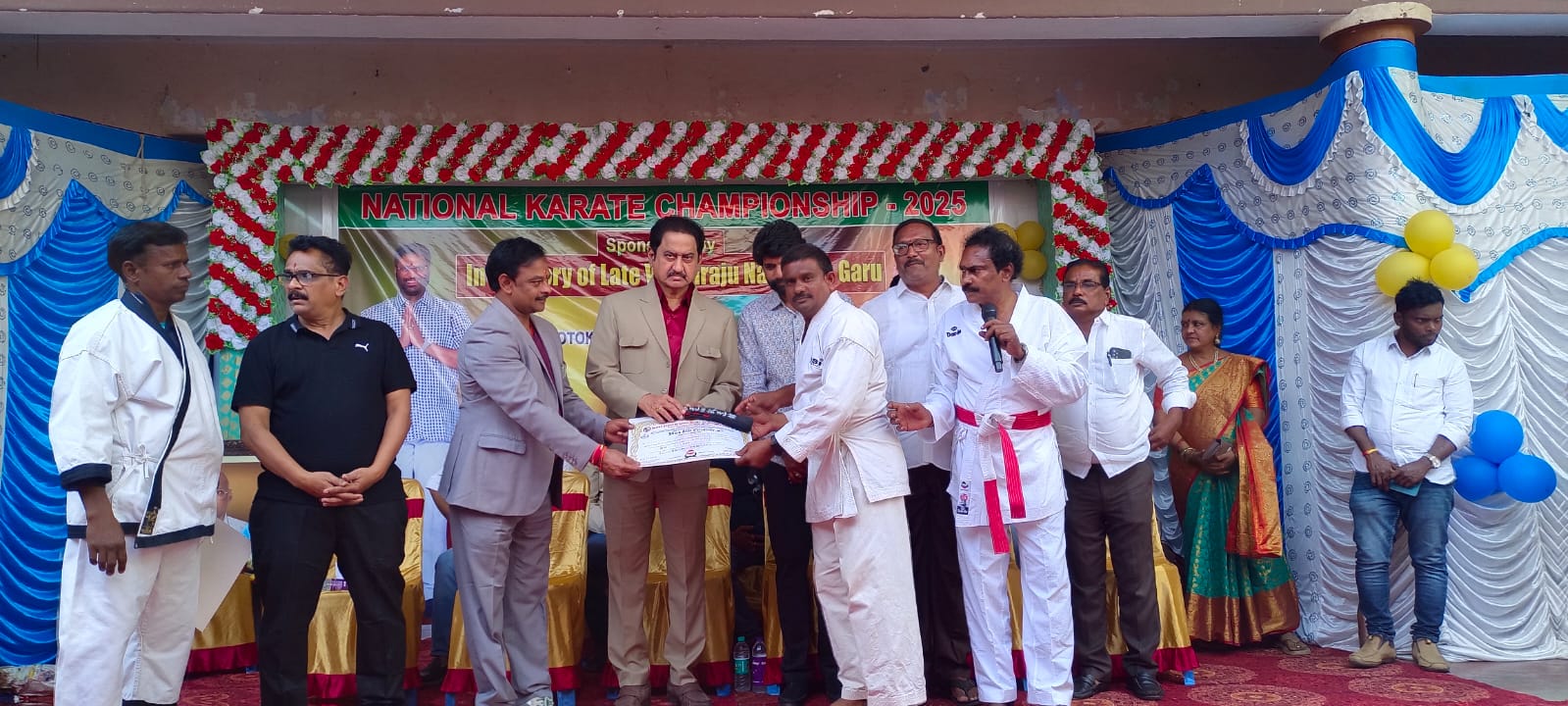 Mbmtelugunews//కోదాడ, డిసెంబర్ 07(ప్రతినిధి మాతంగి సురేష్): ఖమ్మం లో సుమన్ షోటో ఖాన్ కరాటే అకాడమీ వారి ఆధ్వర్యంలో జరిగినటువంటి 30 వ నేషనల్ కరాటే ఛాంపియన్ షిప్ టోర్నమెంట్ కి ముఖ్య అతిథిగా సుమన్ పాల్గొని సుమన్ చేతుల మీదుగా ఛాంపియన్స్ కి బెల్ట్ అవార్డ్స్ అండ్ సర్టిఫికెట్లు ఇవ్వడం జరిగింది.
