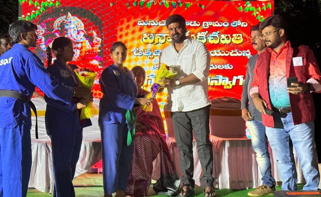 Mbmtelugunews//నెల్లూరు జిల్లా,సెప్టెంబర్ 08:మనుబోలుపాడు,కావలి నియోజకవర్గం లో కరాటే ఫిఫ్త్ డాన్ ఆది ఆధ్వర్యంలో మనుబోలుపాడులో వినాయక చవితి ఉత్సవాలలో భాగంగా మహిళలు కరాటే నేర్చుకోవాల్సిన ఆవశ్యకత తెలియజేస్తూ కరాటే విన్యాసాలు,సాంస్కృతిక కార్యక్రమాలు ప్రదర్శించారు.ఈ కార్యక్రమానికి ముఖ్య అతిథులుగా జనసేన పార్టీ ప్రధాన కార్యదర్శి గునుకుల కిషోర్,అడ్వకేట్ రమా,సుమన్ ఫ్యాన్స్ అసోసియేషన్ నేషనల్ ప్రెసిడెంట్ రషీద్,కరాటే మాస్టర్ వసంత్ పాల్గొన్నారు.ఈ సందర్భంగా గునుకుల కిషోర్ మాట్లాడుతూ కరాటే గురించి అందరికీ ఉత్సాహం ఉన్న నేర్చుకునేది కొంతమందే,అందునా ఫిఫ్త్ డాన్ వరకు రావడం నిజంగా అభినందనీయం.ఈ రోజుల్లో కూడా దాదాపు 100 మందికి కరాటే శిక్షణ ఇస్తూ ముఖ్యంగా మహిళలు సెల్ఫ్ డిఫెన్స కోసం కరాటే నేర్చుకోవాల్సిన ఆవశ్యకతను నేర్పిస్తున్న మాస్టర్ ఆది అభినందనీయులు.అందరికీ వినాయక చవితి శుభాకాంక్షలు.ఆది ఎన్నోసార్లు ఫోన్ చేసి గ్రామంలో కార్యక్రమానికి రావలసిందిగా కోరారు…ఈ విషయంలో ఆయనకి జనసేన పార్టీ పట్ల ఉన్న ప్రేమ,పవన్ కళ్యాణ్ మీద అభిమానం ఎంతో కనపడ్డాయి అందుకే దూరమైన కూడా రాత్రి అయినా కూడా ఇక్కడికి వచ్చాను.ప్రస్తుత పరిస్థితుల్లో కరాటే కేవలం శారీరక ధారుడ్యానికే కాదు మానసిక ఉల్లసానికి ఎంతగానో ఉపయోగపడుతుంది.వసంత్ ని చూస్తే 70 సంవత్సరాలా అనిపిస్తుంది దేహ సౌందర్యాన్ని కాపాడుకోవాలంటే క్రీములు కాదు ఇలా కరాటే లాంటివి నేర్చుకోవాలి అని అందరూ తెలుసుకోవాలి.కరాటే విన్యాసాలలో భాగంగా పెంకులు పగలగొట్టడం చూశానేని కార్ కింద చేతులు పెట్టడం ప్రత్యక్షంగా చూడడం ఇదే.కరాటే వంటి విద్యలను మనం కూడా ప్రోత్సహించాలి దానికి నా వంతుగా నా ప్రయత్నం చేస్తానని తెలిపారు.