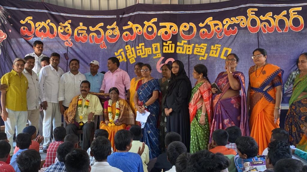 హుజూర్ నగర్,ఏప్రిల్ 22 (mbmtelugunews)ప్రతినిధి మాతంగి సురేష్:60 వసంతాల వేడుకలు వారి జీవితంలో వారు సమాజానికి చేసిన సేవలను గుర్తుచేస్తాయని హుజూర్ నగర్ ప్రభుత్వ పాఠశాల ప్రధానోపాధ్యాయురాలు జయవావాణి దేవి అన్నారు.సోమవారం హుజూర్ నగర్ ప్రభుత్వ పాఠశాలలో స్కూల్ అసిస్టెంట్ జీవశాస్త్రం ఉపాధ్యాయులుగా పనిచేస్తున్న మాతంగి ప్రభాకర్ రావు వారి సతీమణి నల్లబండగూడెం స్కూల్ అసిస్టెంట్ ఇంగ్లీష్ ఉపాధ్యాయురాలుగా పనిచేస్తున్న మాతంగి రత్నకుమారి లకు ప్రభుత్వ పాఠశాల ఉపాధ్యాయ బృందం 60 వసంతాల వేడుకలను ఏర్పాటు చేసినారు.